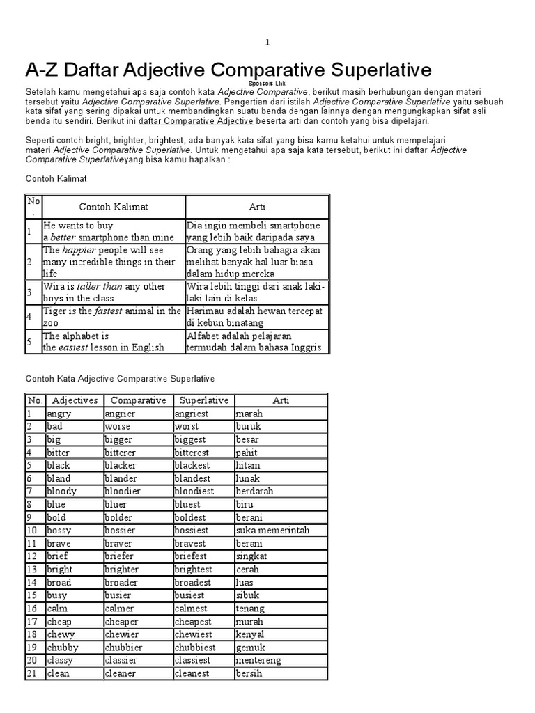 | Lihat Contoh Kata Parative Materi Pelajaran 1 |